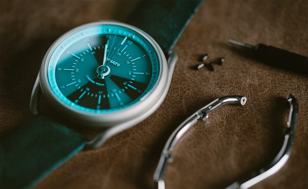Calendar Watch’s minimal aesthetic forgoes any dials or buttons for an intuitive interface and sleek display, artfully melding analog and digital technology in its design.