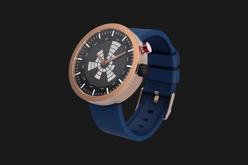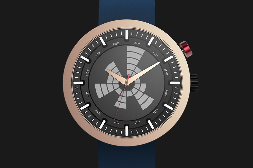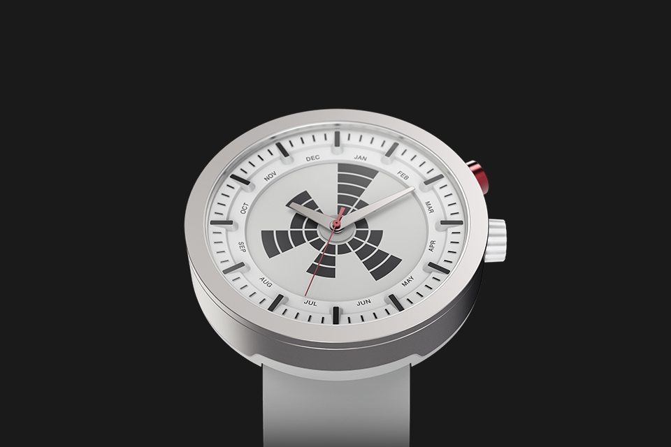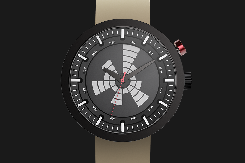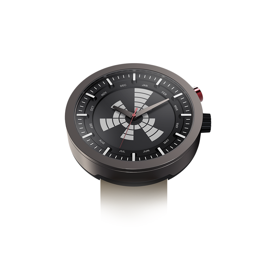 Our most unconventional model, this watch is reminiscent of Cold-war era military design, where ruggedness met functionality. The sleek, vacuum plated unibody enclosure encapsulates the futuristic and functional dial, while the display draws design cues from the birth of radar technology.